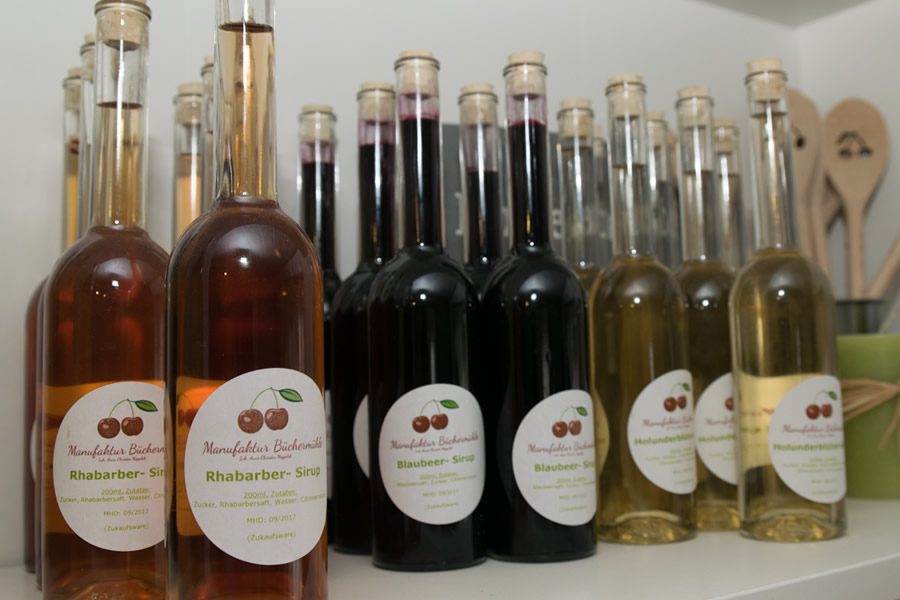 Selbstgemachte Marmeladen, Gelees und aufgesetzte Liköre, verschiedene Geschenkideen und hausgebackene Kuchen – die Manufaktur Büchermühle hat ein vielseitiges Angebot und liegt fast genau am Rundwanderweg „Lauftreff Büchermühle“.