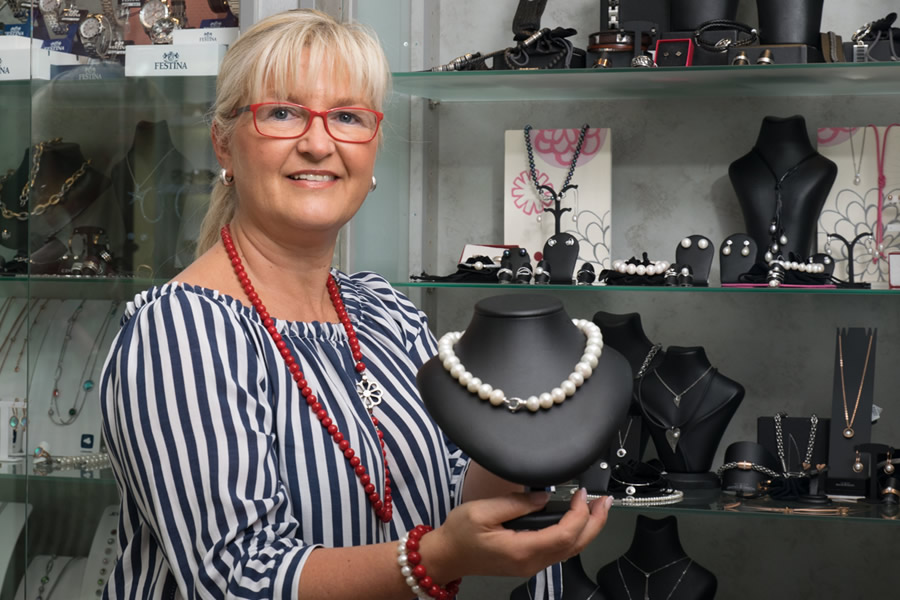 gepflückt und in einem aufwendigen Verfahren in individuelle Schmuckstücke verwandelt. Die Leonardo-Ketten können wiederum durch unterschiedliche Anhänger immer wieder umgestaltet werden. Armbänder, Ohrstecker und Ringe runden das Angebot von Leonardo ab“, sagt Ursula Illing. Bei der Schmuck Ecke können die Kunden zwischen Ketten, Armbändern, Ohrringen, Ringen, Trauringen, Uhren, Schlüsselanhängern oder Bilderrahmen wählen. Illing: „Unsere Kollektionen machen Ihr Outfit zu einem Highlight und unterstreichen Ihre Persönlichkeit. Wir haben das passende Schmuckstück – egal, ob zum Verschenken oder Selbstbeschenken. Selbstverständlich werden Ihre Geschenke auch exklusiv verpackt.“